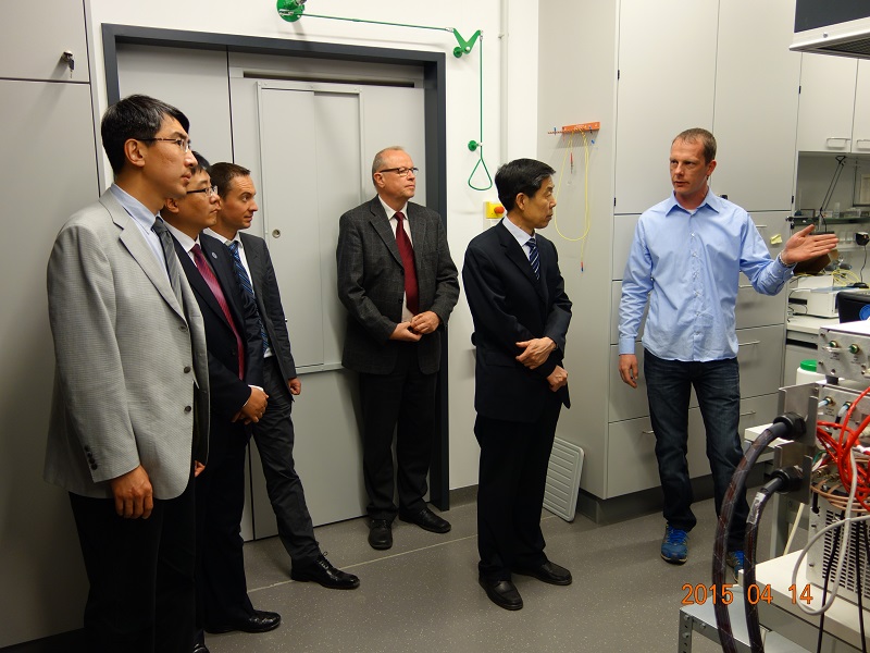 在德国,代表团访问了位于柏林的盖斯特哈赫特研究中心(HZG),会见了生物材料科学研究所主任Andreas Lendlein教授、副主任Marc Behl博士、Nan Ma教授等, 受到了Lendlein教授等人的热情欢迎。他们介绍了研究所近年来的发展情况,以及同中国开展合作研究及联合培养研究生的工作进展,表达了继续加强与中国同行,特别是天津大学开展合作的意愿。代表团随后参观了相关实验室,同多个实验室的科研人员及研究生进行了深入交流。刘书记一行还看望了我校在此就读研究生的校友。在柏林期间,代表团还访问了波兹坦大学(University of Potsdam)。在波兹坦大学,负责研究生事务的副校长Robert Seckler向代表团详细介绍了学校的总体情况,以及该校在导师联合指导博士生研究方面所做的尝试及所取得的成绩。该校为每位研究生设有两位导师(Supervisor),两位导师分别来自相关但不同的领域,以便指导学生从事跨学科研究。此外,该校还指定博士后为博士生的生活导师(Mentor),实时为他们提供各种服务支持。同时,学校要求每位博士生每个学期都要开设课程,这既是对他们教学能力的培训,也对学生综合利用各类知识提供了条件。这种博士生的培训方法给代表团留下了深刻的印象。由于柏林地区高等教育的整合发展,柏林自由大学、波兹坦大学与盖斯特哈赫特研究中心建立了合作研究生院,负责整体协调各单位的研究生招生、指导和管理。会谈中,Seckler副校长表达了希望依托与盖斯特哈赫特研究中心的合作关系同天津大学开展合作。刘建平书记一行也积极回应,表示天津大学支持三方开展合作并拓展合作领域。该校数学及自然科学学院的院长Helmut Elsenbeer教授及化学及物理研究所的Michael Kumke分别介绍了各自单位的情况,并带领代表团参观了该校的相关实验室。在德国,代表团还会见了柏林自由大学Dahlem研究院主任Martina van de Sand博士,她也向代表团介绍了以柏林自由大学牵头,与包括盖斯特哈赫特研究中心在内的科研机构合作研究生管理的做法,表达了继续同盖斯特哈赫特研究中心一起开展同天津大学合作的意愿。