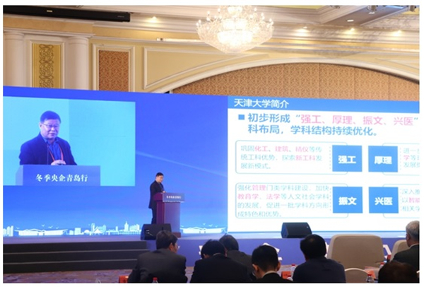 会议期间,元英进副校长以“服务国家战略,融入地方发展”为题,从国家战略、国内外形势、天津大学实际情况出发,阐述了天津大学在服务国家海洋战略,融入区域发展的有关经验做法和发展规划,表达了与在座央企、高校科研院所携手共建青岛美好未来的合作的意愿,获得了与会领导专家的广泛认同和高度评价。