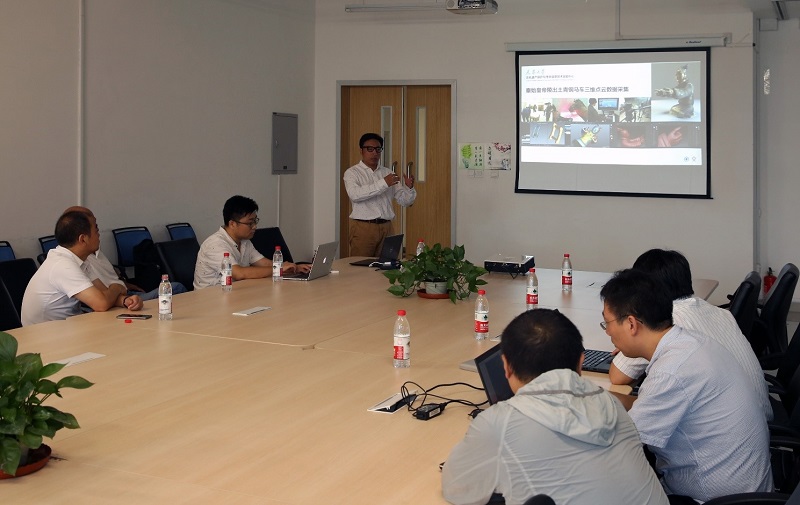 侯宁彬一行在孙济洲教授、张加万教授等人的陪同下,到访计算机学院、软件学院,对文化遗产保护与传承信息技术研究中心实验室进行了访问,并听取了教师代表对前一阶段合作项目进展情况的汇报,双方还就未来的合作命题及合作项目的工作开展进行了深入讨论。