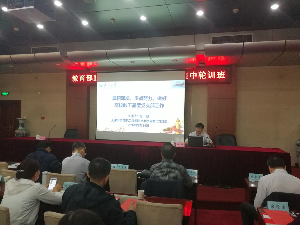 本站讯(通讯员 刘宝珑)9月26日,建工学院水利水电第二党支部书记马超受邀为教育部直属机关基层党支部书记集中轮训班分享“双带头人”党支部工作经验。
