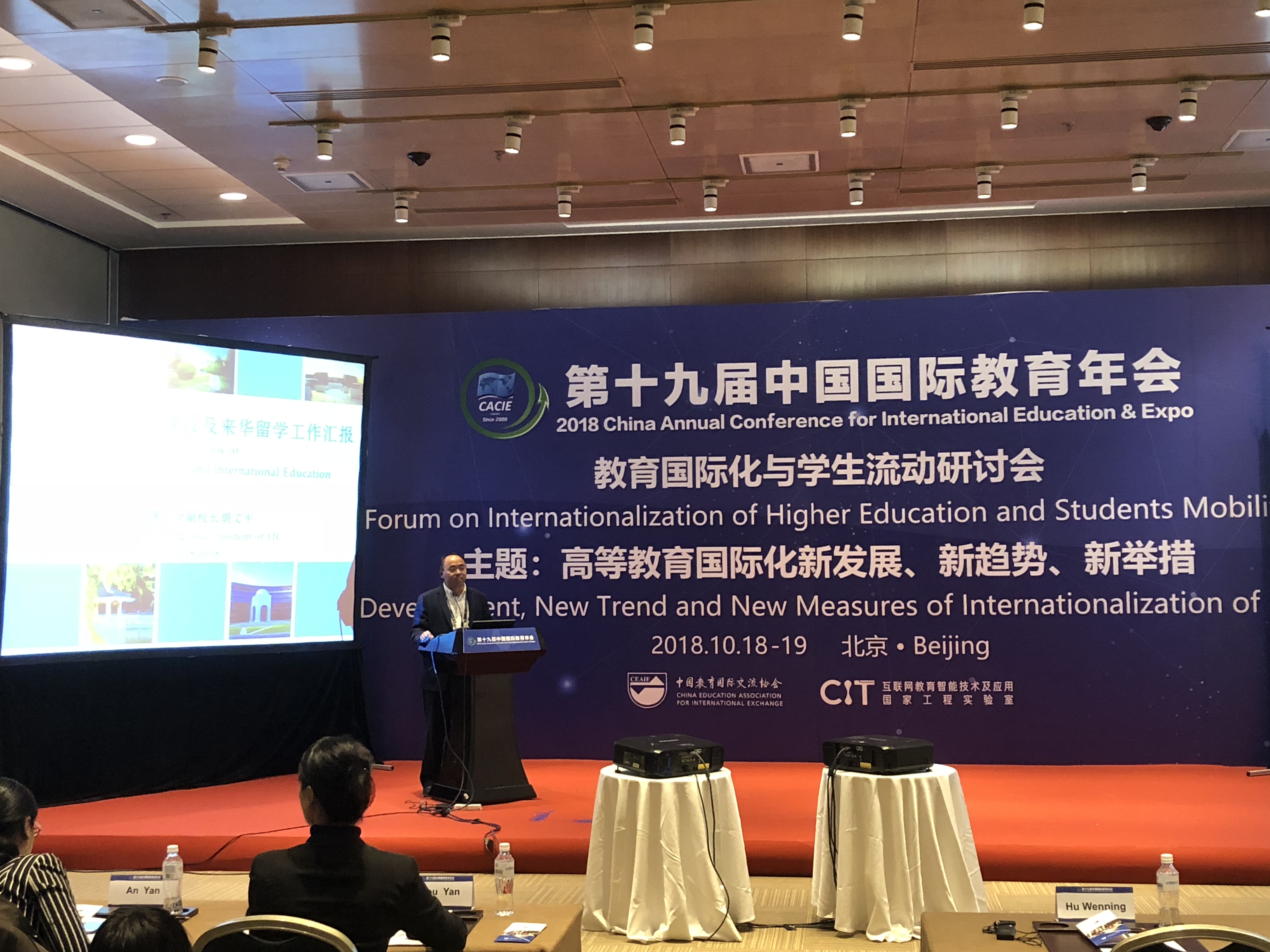 本站讯 10月18日,中国教育国际交流协会在北京召开了“第十九届中国国际教育年会”。天津大学胡文平副校长受邀出席了“质量第一:来华留学事业新征程”专题研讨会暨“高等学校来华留学质量认证”项目启动仪式并做专题发言。