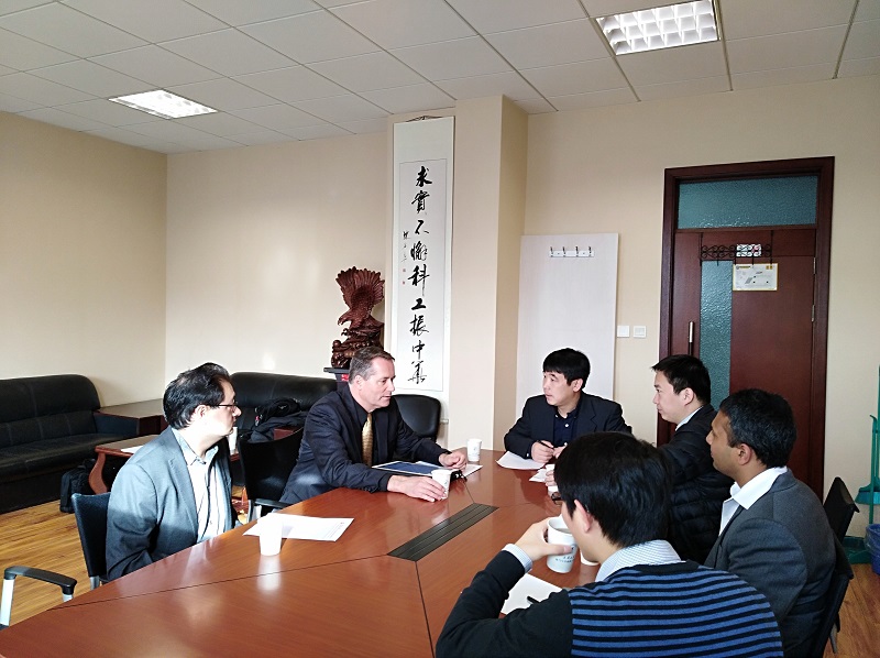 自动化学院副院长张涛、院长助理谭超以及何晋伟、邓斌、冀中、徐岩、李根等参加了多场次会谈。会谈中,张涛对Kevin教授一行表示了热烈欢迎,简要介绍了自动化学院的历史沿革、学科建设以及科研发展情况,建议以电气学科的合作为基础,扩大两校优势学科间的合作,从签订具体学生合作培养协议和扩大学术合作交流两个方面开启校院两级的互访活动,建立一个常态化的两校合作机制。此外还提出定期举办学术研讨会等相关的科研及教学活动建议。