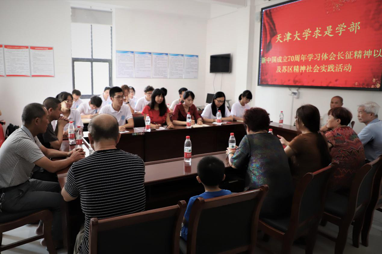 深入了解老区的革命历史,体会革命先辈不畏艰难的斗争历程。实践队走访了吉安市解放桥社区、吉水县八都镇东坊村和瑞金市华屋红军村等地,采访当地群众,邀请红军后人、退伍军人、老党员、居民代表座谈交流。在华屋红军村采访红军烈士后人华从祁,听华爷爷讲述当年的华屋村43户人家中17人参加红军长征的故事。在吉安解放桥社区,参加过对越自卫反击战的老兵尹名剑谈道:“保护祖国不受外侮,国家的利益永远高于一切,我既是士兵,也是党员,我听党话,跟党走。”东坊村村支书向实践队员们介绍了当地发展,在“支部引领,农户参与,共谋发展”的口号引领下,村里已经建立蔬菜基地、养牛基地、光伏基地等,依靠科技兴农成功脱贫。实践队通过调研革命老区的红色文化价值,挖掘红色文化资源,为保护、传承、发展红色文化贡献大学生的力量。