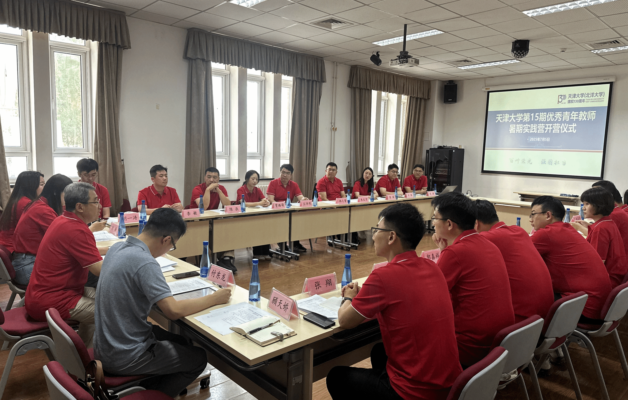 7月5日,天津大学第15期优秀青年教师暑期实践营(下称“实践营”)开营仪式在卫津路校区教职工文化活动中心举办。校工会常务副主席宋雪峰,副主席魏欣,往期营员代表以及第15期实践营全体营员参加。活动由工会挂职副主席刘楠主持。