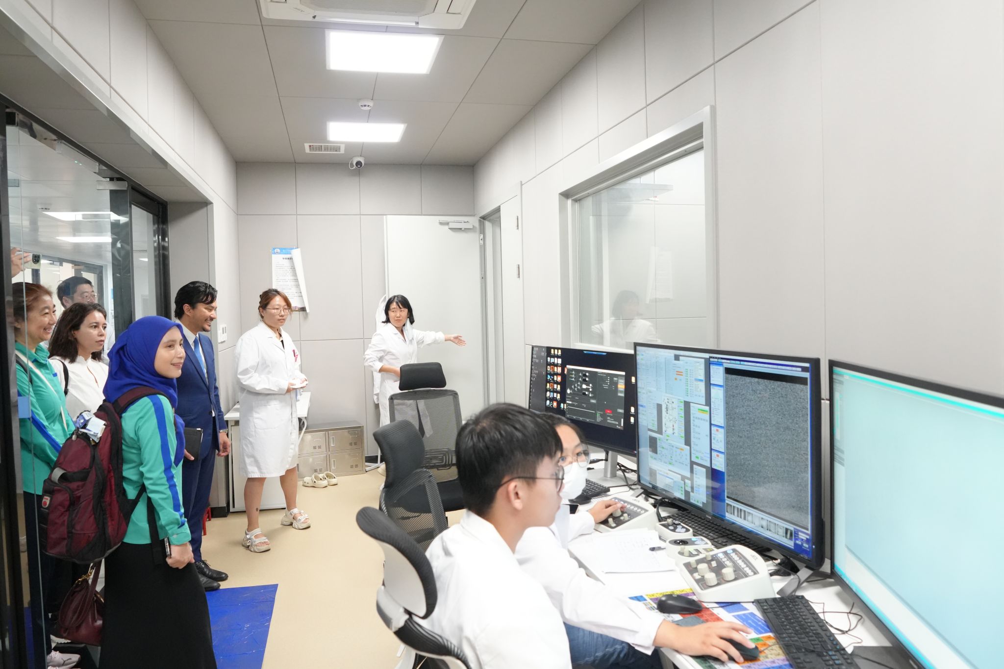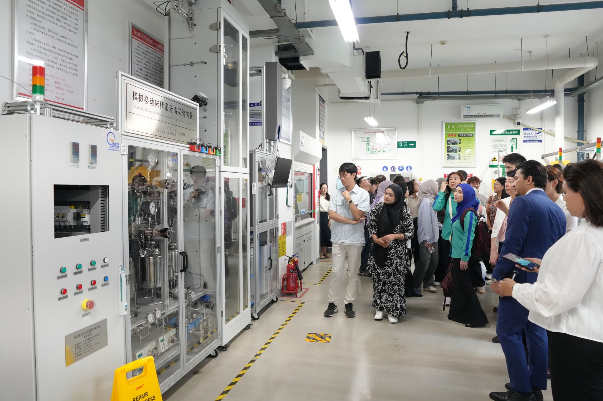 会后,教育参赞一行参观了化工学院先进的国家级实验教学示范中心和大型仪器分析测试平台科研服务设施,参观过程中UMPSA教师与实验中心教师深入交流研讨未来实验教学合作事宜。