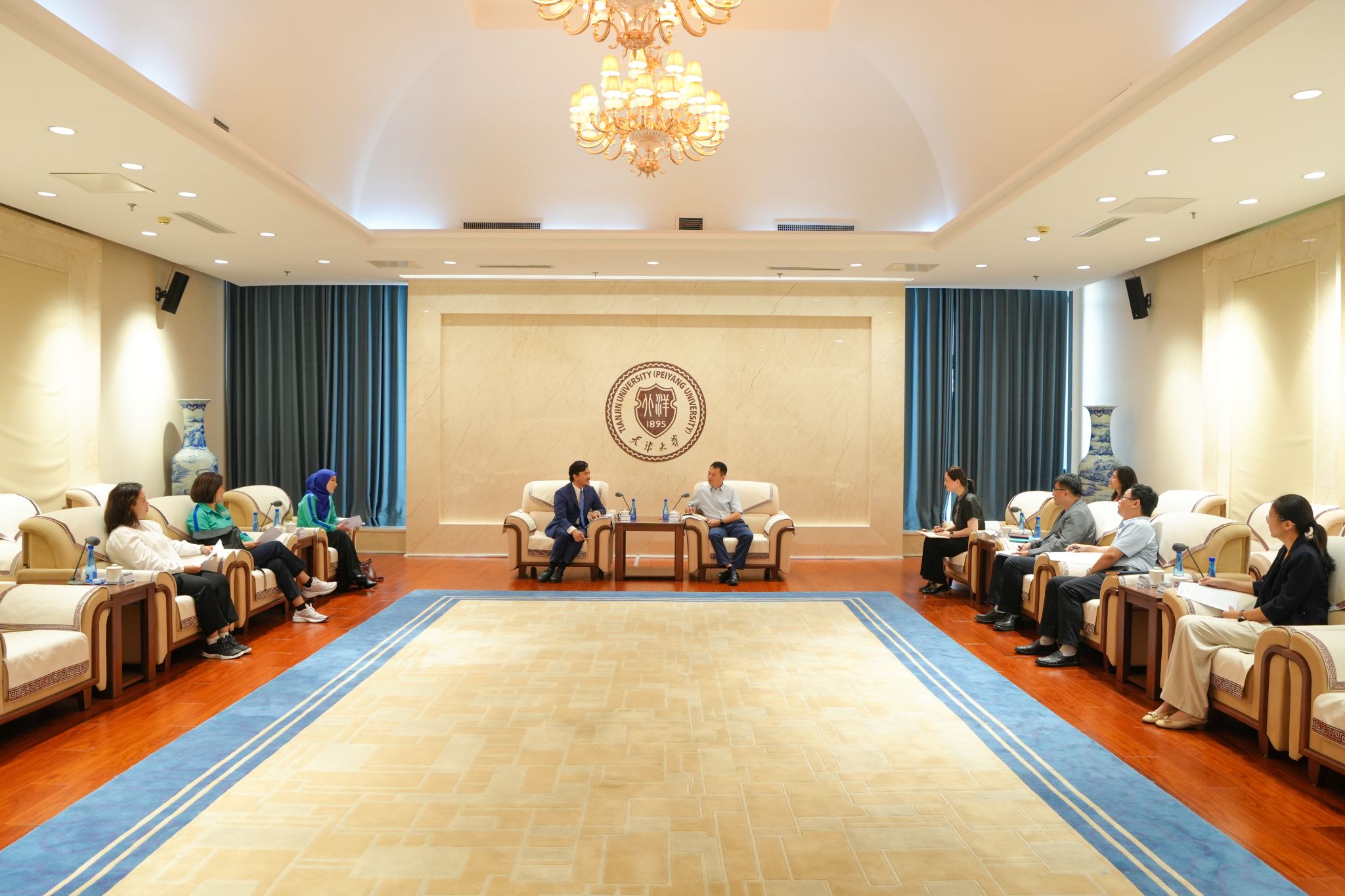 9月12日,马来西亚驻华使馆教育参赞沙烈胡丁(Muhammad Sallehuddin)先生来访天津大学,学校党委常委、组织部部长赵金铎会见来宾。赵金铎热烈欢迎沙列胡丁参赞再次莅临我校,共同见证我校与马来西亚彭亨阿苏丹阿都拉大学化学工程专业联合培养项目首届学生的迎新时刻,感谢马来西亚政府对此项目的大力支持。他回顾了安瓦尔总理在上合峰会期间来校访问并发表的公开演讲,鼓励天津大学的全体师生以更饱满的热情为中马关系发展而努力工作、勤奋学习,积极贡献自身力量。未来,天津大学将进一步加深同马来西亚的教育、科研合作和人员交流。