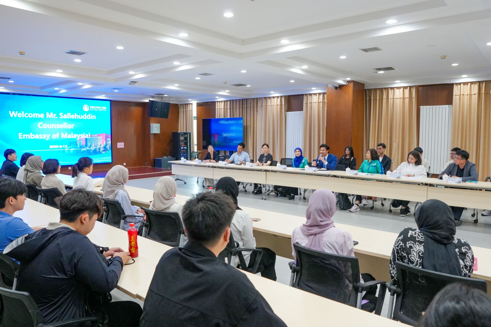 会见结束后,化工学院组织了教育参赞沙烈胡丁先生与马来西亚留学生专场座谈会,黄守莹副院长主持会议,国际合作与交流处张玲处长、国际教育学院李锵院长、化工学院汪怀远书记、UMPSA教师、Yayasan Daya Diri基金会负责人等一同参会。汪怀远热烈欢迎留学生的到来,并感谢教育参赞、天津大学国际合作与交流处、国际教育学院对化工学院的大力支持;黄守莹简要介绍了化工学院来华留学教育工作情况。马来西亚教育参赞Sallehuddin先生高度赞扬了天津大学化工学院提供的高质量来华留学教育项目,嘱咐马来西亚留学生珍惜机会努力学习,以良好的表现做留学生的标杆与表率,搭建中马友谊的桥梁。张玲表示学校各部门将齐心协力为留学生提供高质量的服务。李锵鼓励留学生学好汉语言,学习中国文化,服务中马命运共同体建设;UMPSA的Dr. Nik激励留学生们认真学习,多看、多听、多感悟,在天津大学度过美好的时光。