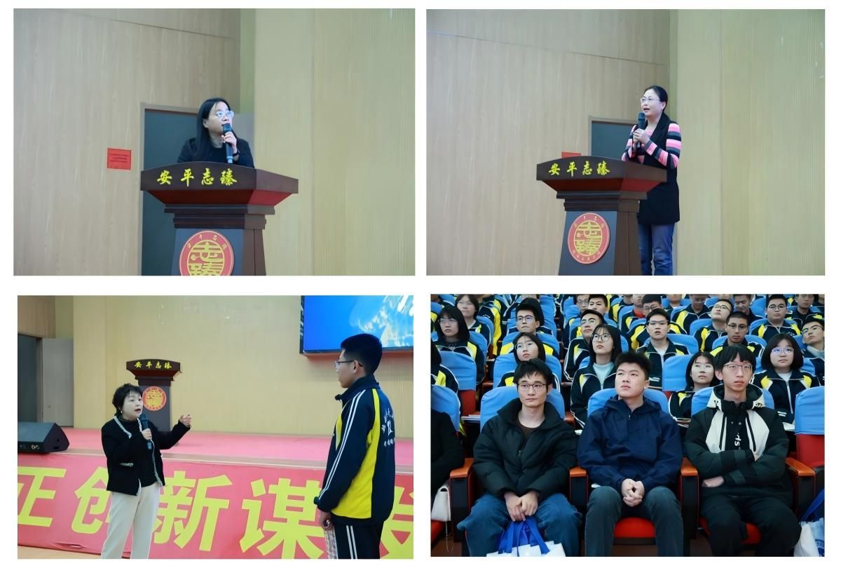 为深入推进高校“双带头人”教师党支部书记“强国行”专项行动,进一步深化校地教育合作,搭建高校与中学人才培养的紧密衔接桥梁,11月16日,数学学院基础数学教师党支部组织骨干党员教师和学院优秀本科生党员代表成立宣讲团,由党支部书记胡玉梅带队赴河北省衡水市,先后走进安平志臻中学与衡水滨湖新区志臻中学开展校园宣讲及学术交流。