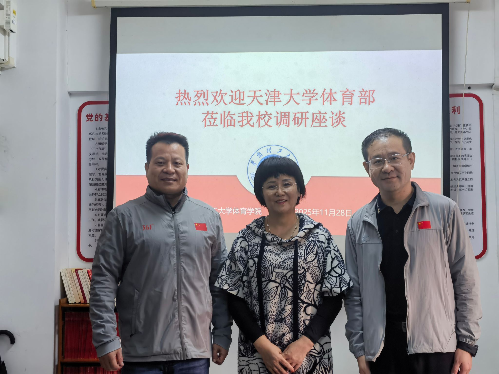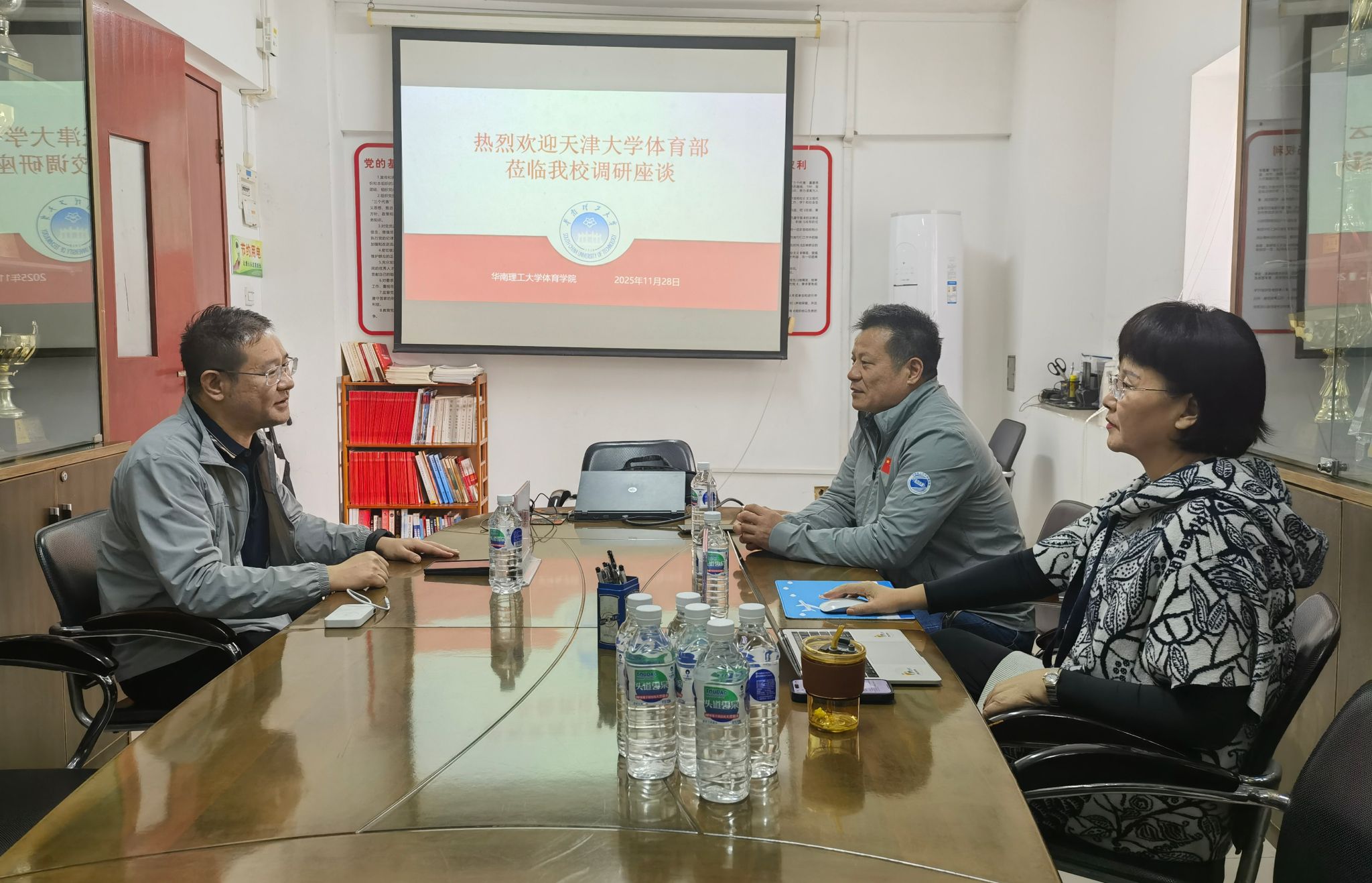 为持续推进体育学科建设与人才培养体系优化,加强校际合作与经验共享,11月28日,天津大学体育部党总支书记、主任李磊赴华南理工大学开展专题调研,华南理工大学体育学院党总支书记万发达,院长樊莲香参加座谈交流。