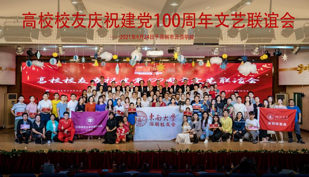 本站讯(通讯员慈马祥)4月24日下午,由深圳市南山区心声艺术团发起组织,南京大学、天津大学、江西师范大学、东南大学、中山大学、南京航天航空大学、南京师范大学、南京工业大学、吉林大学、怀化学院、四川大学等十余家高校校友组织联合主办的高校校友庆祝建党100周年文艺联谊会,在深圳市云顶学校礼堂隆重举行。来自各大高校的300余位校友参加了本次活动。天津大学16级外国语言与文学学院校友、青春星科技CEO慈马祥先生与深圳市心声艺术团周梅梅女士主持了本次联谊会。
