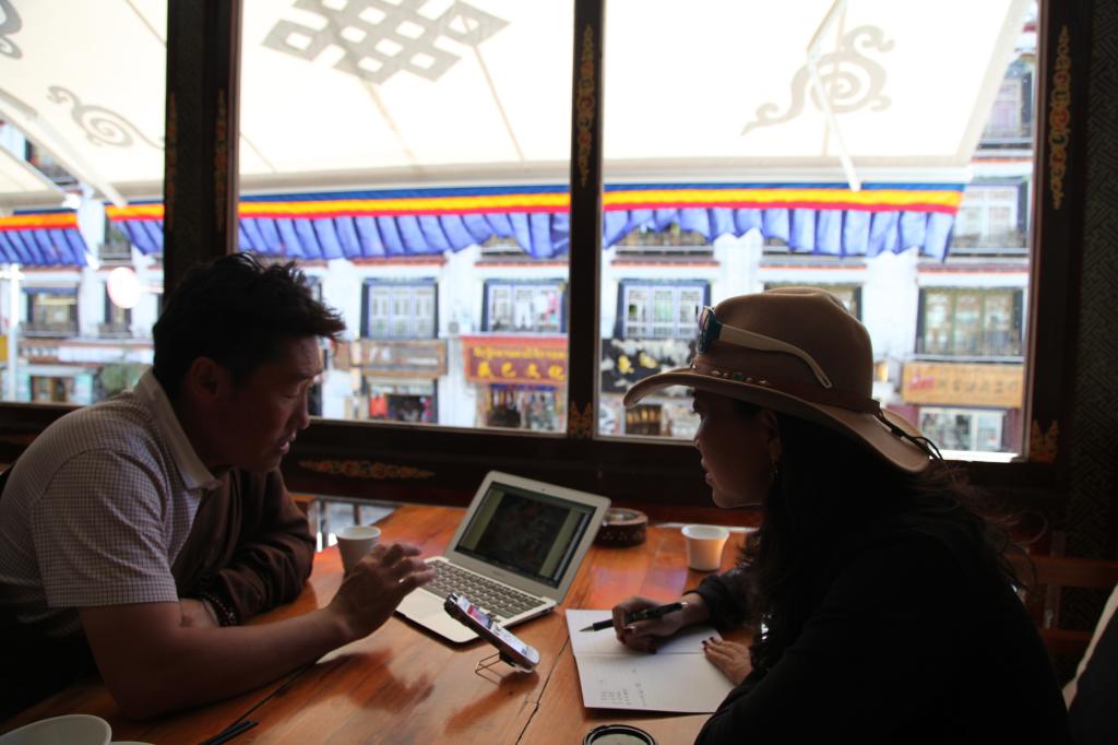 2015年9月,冯莉在西藏拉萨访谈唐卡画师罗布益嘉