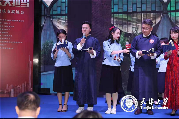 师弟师妹场朗诵北洋学子徐志摩先生的传世名作:再别康桥,让所有同学穿越到了遥远的北洋校园。接着是82级科英班的高小杰师兄和10级MBA班的涂浩翰师姐为大家朗读一首《天大四季》。《天大四季》创作灵感来自肖松山老师用相机和诗词对天大的记录,北洋艺术分会会长张青瑄编辑成了一首美丽的组合诗词。