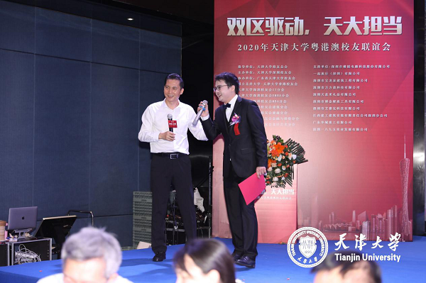 本站讯(通讯员 慈马祥)2020年11月28号,天津大学粤港澳校友联谊在南山区三诺智慧广场举行。天津大学校长助理肖松山、就业指导中心主任柳丰林以及天津大学深圳校友会会长张华农以及相关省市兄弟校友会负责人出席了本次晚会。天津大学北洋艺术分会为大会筹备了一场精彩的文艺演出。