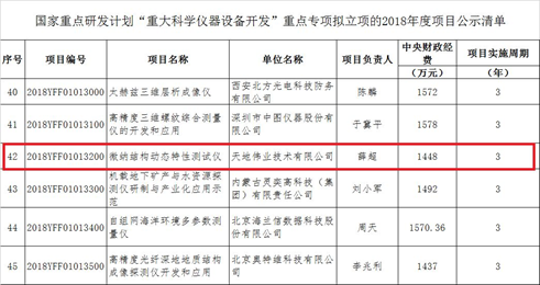 本站讯 近日,国家重点研发计划“重大科学仪器设备开发”重点专项2018年度项目安排如期公示。校友企业天地伟业与精仪学院合作,联合清华大学、天津大学、中国科学院、中国航空工业集团等行业内领先的高校、科研院所、企业共同申报的“微纳结构动态特性测试仪”项目成功入选。