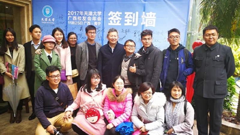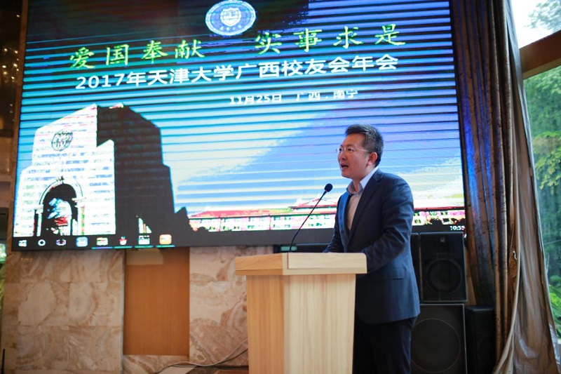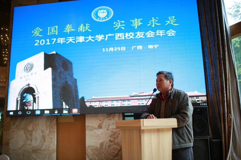 天津大学校友总会理事、广西校友会常委副会长黄凯枫在致辞中表示,广西校友会自1985年成立以来,以校友会作为校友交流平台,积极开展形式多样的校友联谊活动,服务好校友,增强校友的凝聚力:一是以会会友,凝聚情谊,坚持每年召开一次校友联谊会暨校庆庆祝大会,举办新入职校友迎新交流会,经常性举办品茶座谈会、新春户外踏青、马拉松跑步等活动。二是调动资源,服务母校,全力配合母校广西招生工作,利用各种机会宣传天津大学,扩大天津大学在广西的知名度及影响力,同时协助母校师生赴桂开展相关实践及调研工作。三是搭建平台,广交朋友,与兄弟院校校友会联合举办“重点高校广西校友足球联赛”,积极受邀参加其它院校校友会举办的各种活动。广西校友会始终秉承“服务校友、服务母校、服务社会”的宗旨,未来将继续服务母校发展建设,支持校友建功立业,服务广西经济社会发展。