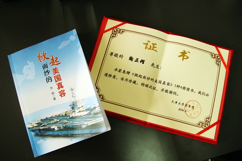 本站讯 (通讯员 孙亮)近日,校友总会收到学校教师鲁泽美转来陶正熠学长赠送母校其所著《掀起面纱的美国真容》。陶正熠校友,笔名“方焰”,曾用名丁未一。早年毕业于燕京大学,解放前曾作为华北学联领导人带领广大热血青年积极投身爱国学生运动。1953年任天津大学政治辅导处主任,同年任中共天津大学总支书记,后在天津市委工作。1990年离休后移居美国纽约。在美期间积极致力于中美和平友好工作,关心祖国的建设发展,并经常在美国及其他国家的报刊以“方焰”笔名发表文章、出版专著,论述“中美和平友好”及揭示美国政治、社会现实,以增强人们对中美不同政治体制的了解。《掀起面纱的美国真容》就是一部以个人的所见所闻和亲身感受揭示美国的真实面目,在探讨和述说中,澄清人们对美国的误解、偏见、幻想和媚俗看法。