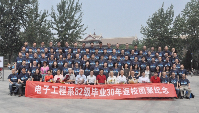 本站讯(通讯员 杨烁)骄阳似火,缤纷六月。6月10日,电子工程系(现电子信息工程学院)1982级校友们正值毕业三十载,重新回到阔别已久的校园,90余名师生欢聚母校,共忆往日情谊,畅谈昔日美好时光。信息学院党委书记杨欢、学院副书记陆丽、学院校友会秘书长马景复,1982级辅导员天津大学仁爱学院党委书记杭建民出席联谊会。联谊会由校友代表刘峰主持。
