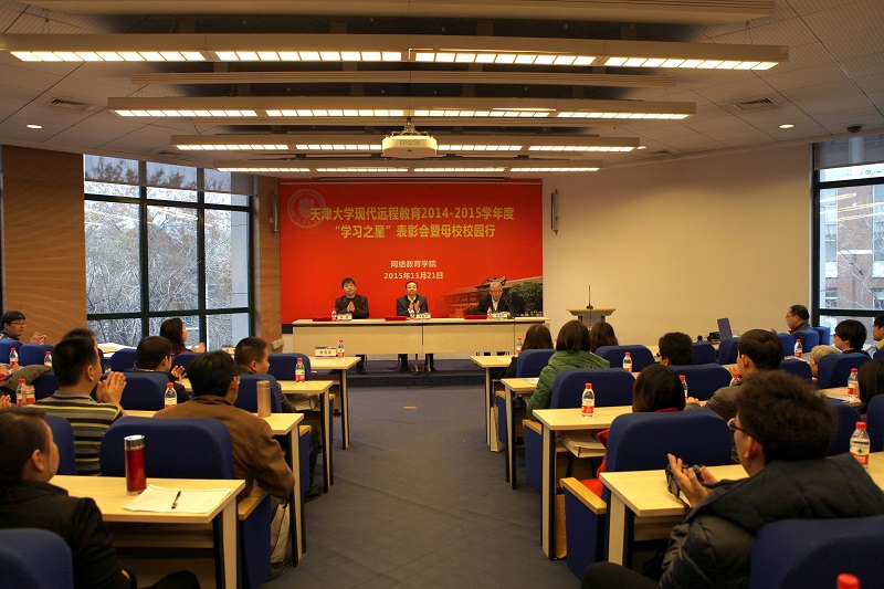 本站讯(通讯员 嫣然 摄影 陈鑫)11月21日上午,天津大学现代远程教育2014—2015年度“学习之星”表彰会暨母校校园行在学校会议楼第八会议室举行。网络教育学院院长李振宇、副院长郭强,受表彰学习之星代表、学习中心教师代表及学生家属出席了活动。