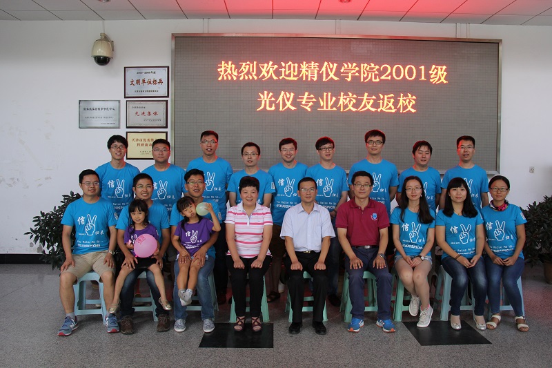 最后,时任精仪学院01级辅导员、现任天津大学校办副主任的袁惠龙老师和精仪学院党委书记王海龙相继赶来。袁惠龙老师和校友们亲切地握手,并和大家一起回忆那段难忘的青葱岁月。王海龙书记向校友们介绍了精仪学院在学科建设、人才培养和师资引进方面的情况,对校友回归母校表示热烈欢迎,也希望校友们能够为社会做出更大的贡献,从而把天津大学的声誉传播得更广更远。