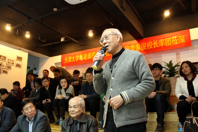 李家俊向校友们介绍了学校事业发展和新校区建设进展情况,对在深圳工作的校友表达了新春问候,并欢迎校友们在天津大学建校120周年之际回母校参加庆典。香港校友会荣誉会长吕良民、温競文代表海外校友提出建议,希望学校加强人才引进和培养工作,做好新校区建设,为天津大学未来的发展打下坚实的基础。天津大学EMBA深圳同学会会长冯海军、深圳校友会副会长兼秘书长欧阳建国分别汇报了同学会和校友会一年来的工作情况。