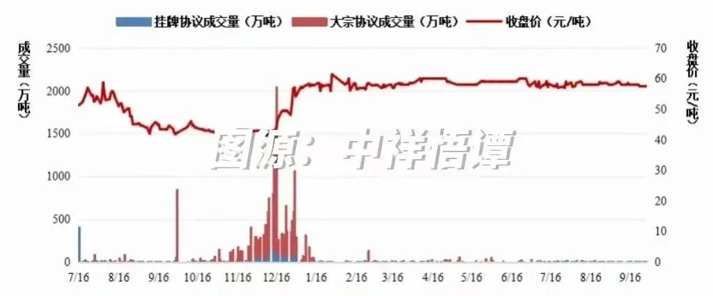 自中国全国碳市场运行以来,总体上讲,碳价并未出现大幅涨落,挂牌价格在40~60元/吨范围内波动。然而,挂牌价格高估了整体碳市场价格,原因在于大宗协议绝对主导整体碳市场交易,而大宗协议交易相对挂牌交易存在一定的折价。大宗协议交易主要是通过集团内部配额分配、不同排放控制企业之间直接谈判或通过中介谈判实现的。由此产生的交易相对复杂,交易过程不够透明,结算的交易价格既不能反映配额的价值,也不能反映减排的边际成本,价格信号失真。