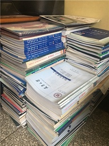 罗纪生的办公室没有购置饮水机,每次都会端着水壶去隔壁学生的办公室打水喝。罗纪生习惯坐在小电脑桌前研究课题,旁边的大办公桌摆满了各类期刊杂志和书籍,足有一米多高。