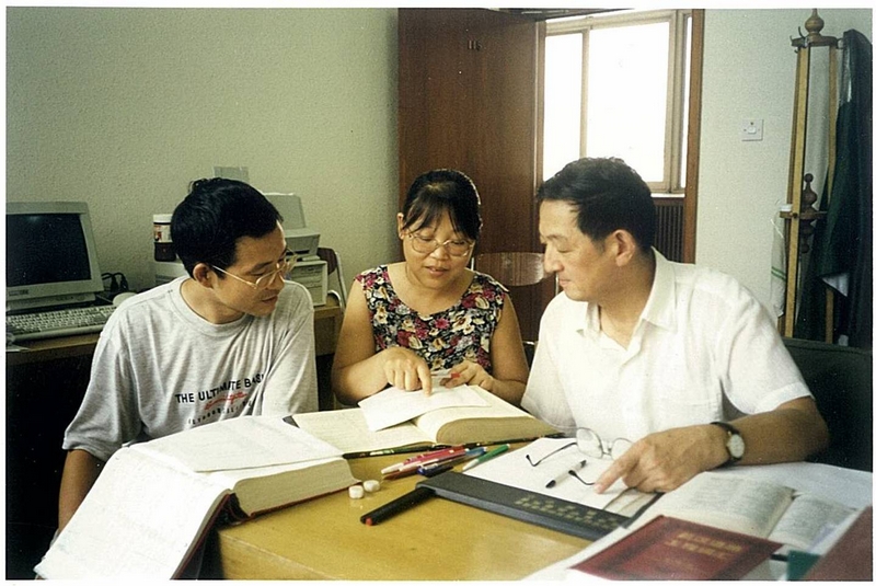 何伯森(右一)与周可荣、张水波等合作译校FIDIC文件、编写《国际工程管理英汉汉英词汇》(图片由受访者提供)