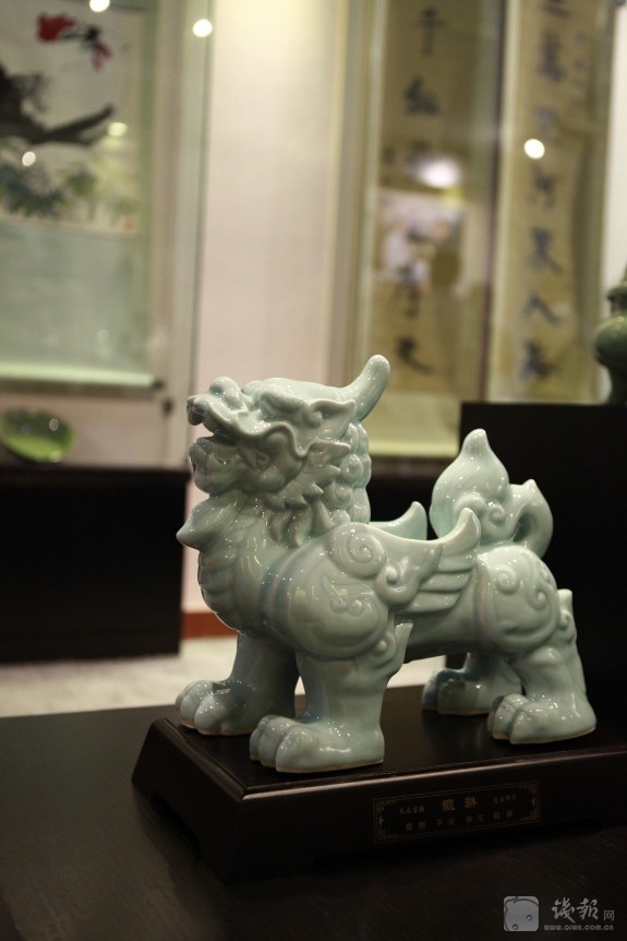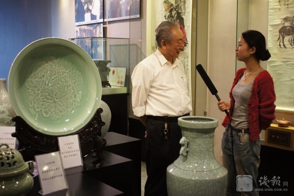 特别值得一提的是,工作室目前向公众展示的,除了叶老亲手烧制的哥窑、弟窑和官窑青瓷珍品,以及与叶国珍大师合作的变色釉作品,与龙泉夏侯文大师合作的青瓷堆花等新产品,还集中展示了几大名窑一系列大师的代表作品。其中,有河南钧窑任星航大师、河南汝窑朱文立大师、福建德化柯宏荣大师、江西景德镇彩瓷黄云鹏大师、江苏宜兴紫砂葛军大师、房暗星大师、长兴紫砂董建民大师等。在面积一百平米的工作室,名瓷荟萃。这也显示了叶老开放合作的豁达心态。叶老希望中国陶瓷的各门各派都能加强光流合作,共同创造中国陶瓷新的辉煌。