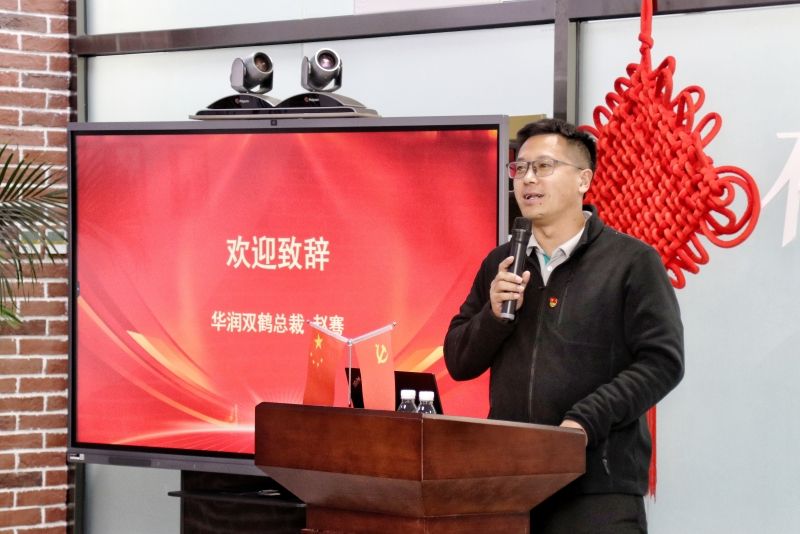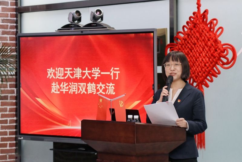 随后,双方举行座谈交流。华润双鹤总裁赵骞首先对天津大学师生一行的到访表示热烈欢迎。他在致辞中指出,党建工作与业务发展息息相关、相辅相成,是企业持续健康发展的重要保障,希望以此次共建为契机,深化双方在人才培养、科学研究等领域的合作。