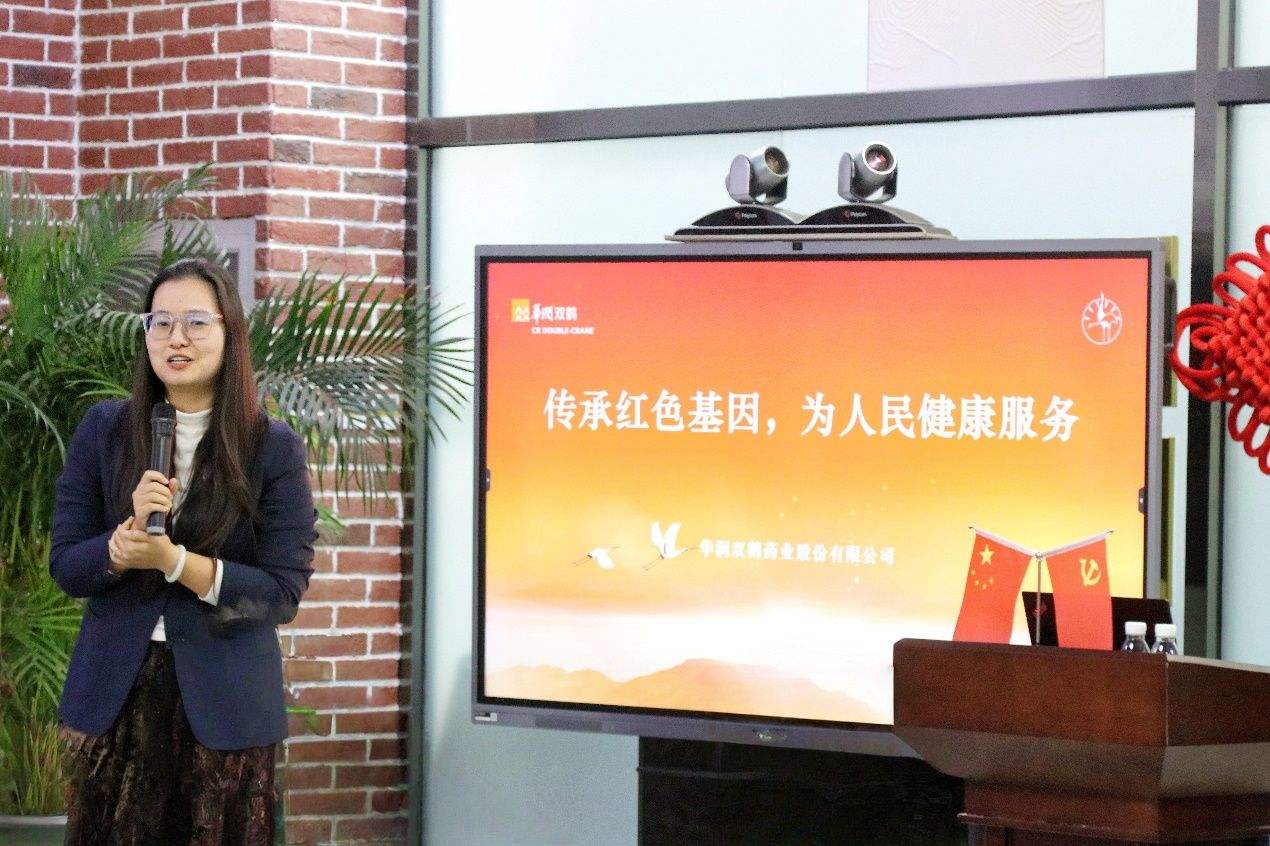 华润双鹤党群工作部副总经理王婕作专题发言。她深入阐释了华润双鹤“为人民健康服务”的初心使命与红色基因的传承。她介绍,华润集团成立于1938年,双鹤药业前身则源于1939年创建于八路军太行山革命根据地的卫生材料厂与制药所,是一家“因党而生、跟党创业、跟党改革、跟党前行”的红色企业。历经86载风雨,从太行山深处的艰苦创业,到如今发展成为总部位于北京、总资产超百亿、业务涵盖研发、生产、销售全链条的综合性医药集团,华润双鹤始终将“传承红色基因”作为精神内核,将服务党和国家大局、满足人民健康需求作为根本宗旨。王婕重点分享了以“以身许国的奉献精神、艰苦创业的奋斗精神、敢为人先的创新精神、追求卓越的工匠精神”为核心的新时代太行精神,以及公司为赓续红色血脉打造的“鹤太行”党建品牌。她表示,期待与天津大学携手,在“为人民健康服务”的共同目标下,开展更多实质性合作。