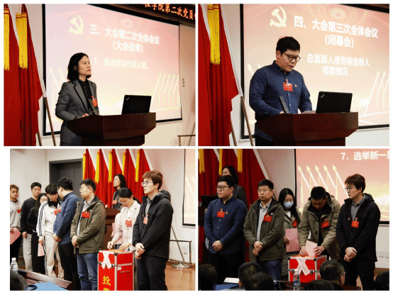 大会以无记名投票方式差额选举产生了中共天津大学材料科学与工程学院新一届委员会委员(以姓氏笔画为序):马哲(回族)、王颖(女)、毛晶(女)、申俊琦、刘一、刘永长、孙晓红(女)、何春年、韩曼瑜(女)。大会在雄壮激昂的《国际歌》声中圆满闭幕。