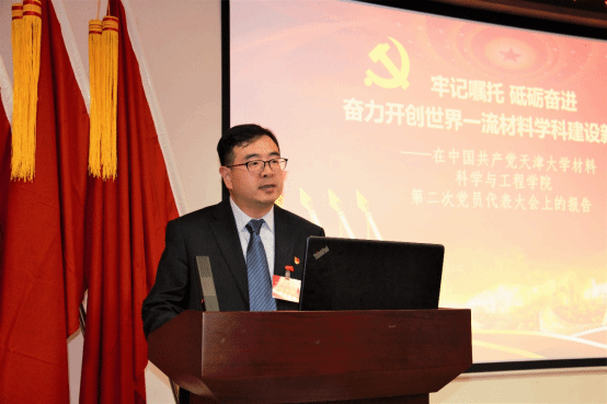 大会号召学院全体党员更加紧密地团结在以习近平同志为核心的党中央周围,以习近平新时代中国特色社会主义思想为指引,在学校党委的坚强领导下,拼搏奋斗、勇毅前行,奋力开创世界一流材料学科建设新局面,为天津大学迈向世界一流大学前列、建设教育强国科技强国、推进中国式现代化作出天大材料人新的更大贡献!
