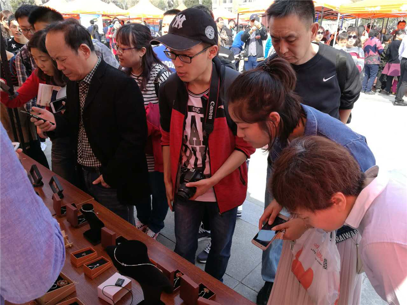 游客观赏各类学生设计的海棠季文创作品 马雨萌摄