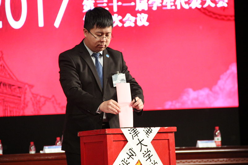 “校长在学代会上面向全体师生做报告,我觉得这本身就是一种民主,一种以学生为主的体现。”文学院的学生代表团团长俞龙说明了自己的参会体验。而在新一届学生代表主席竞选投票环节,遵循着公平公开公正的原则,民主投票,民主选举。在每位候选人发表竞选演讲之后,来自各个学院、社团等的298名学生代表依次有序地投出了自己手中宝贵的一票。作为投出选票的其中一员,俞龙深有感触:“成为学院的学生代表,我感到很荣幸,也很明白自己要成为同学们维护权利的发声筒。今天的会议多次询问各个学生代表的意见,主席选举过程中也体现了大家对民主选举的重视。这次学代会我对民主有了更深的体验。”
