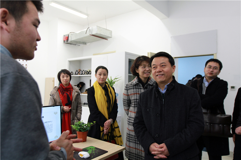 随后傅振邦一行参观了“搭伙”众创空间、IT众创空间、独人工作室等团属双创平台,并与学生创新创业团队进行了交流。在黎明创新实验室的远程会议室,傅振邦一行与正在“远程课堂”进行授课的金嘉轶老师进行了“隔空交流”。傅振邦充分肯定了天津大学创新创业文化氛围和生态环境。