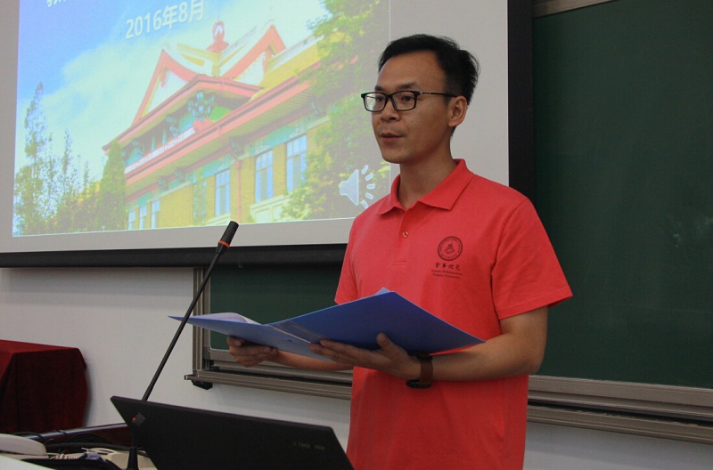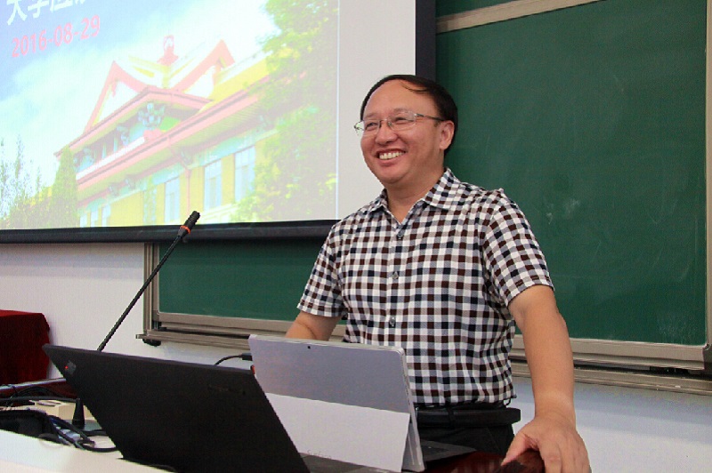 教育学系主任李忠教授代表全院教师发言。“亲爱的同学们,天津大学教育学院新生站到了,请大家携带好随身物品,准备下车。”幽默的开场白,瞬间点燃了现场的热情。李忠老师向同学们讲述了什么是教育学,以及如何学好教育学,如何理解“教育”。他鼓励同学们要不忘初心,坚持梦想,成就自我。他说,