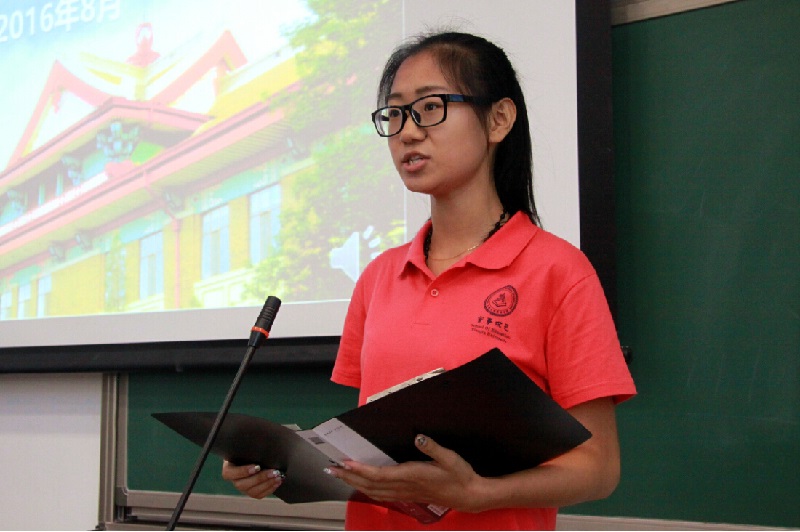 2014级硕士研究生崔洁爽代表研究生老生发言。她分享了自己师从孙颖教授以来,在科研方面的学习体会,以及对科研精神的深刻理解。她说,研究生应以学问为重,科研创新为先,脚踏实地研读前人的成果,并在此基础上寻找新的思路,持之以恒。她祝愿同学们能够在教育学院实现自己的梦想。