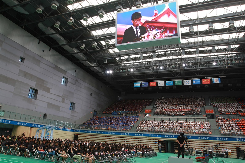 本站讯(记者 赵习钧 摄影 王建泽 赵习钧 学生记者 刘帅)2016年8月26日,天津大学2016年研究生新生开学典礼在卫津路校区体育馆和北洋园校区求实会堂同步举行。今年,共有883名博士研究生和3930名硕士研究生考入天津大学,踏上了他们求学路上的新道路。党委书记刘建平、校长李家俊、副校长 冯亚青、副校长刘东志、总会计师古瑶、校长助理刘宁在北洋园校区出席典礼。常务副校长钟登华、常务副书记副校长舒歌群、副校长余建星、党委副书记纪委书记孙广平、校长助理张力新、党委常委组织部部长马春有在卫津路校区出席开学典礼。各机关部处、学院(部)负责人,学生代表,2016级研究生及家属4000余人参加了典礼。典礼由党委副书记雷鸣主持。