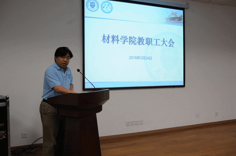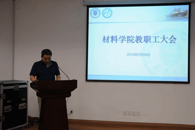 会上审议通过了材料学院第三届工会、教代会工作报告。院党委书记刘秀国宣读了校工会批复。院长胡文彬就材料学院发展建设情况向全院教师做了汇报,他表示,通过全体职工全力配合,学院已经高质量的完成了搬迁工作,教学科研条件得到了很大改善,为以后发展奠定了坚实基础,对全体教职工的辛苦工作和默默奉献表示感谢,希望以后老师们更加齐心协力,稳住良好的发展势头。副院长原续波等其他院领导班子成员就学科评估等重要工作,也向教职工进行了汇报。