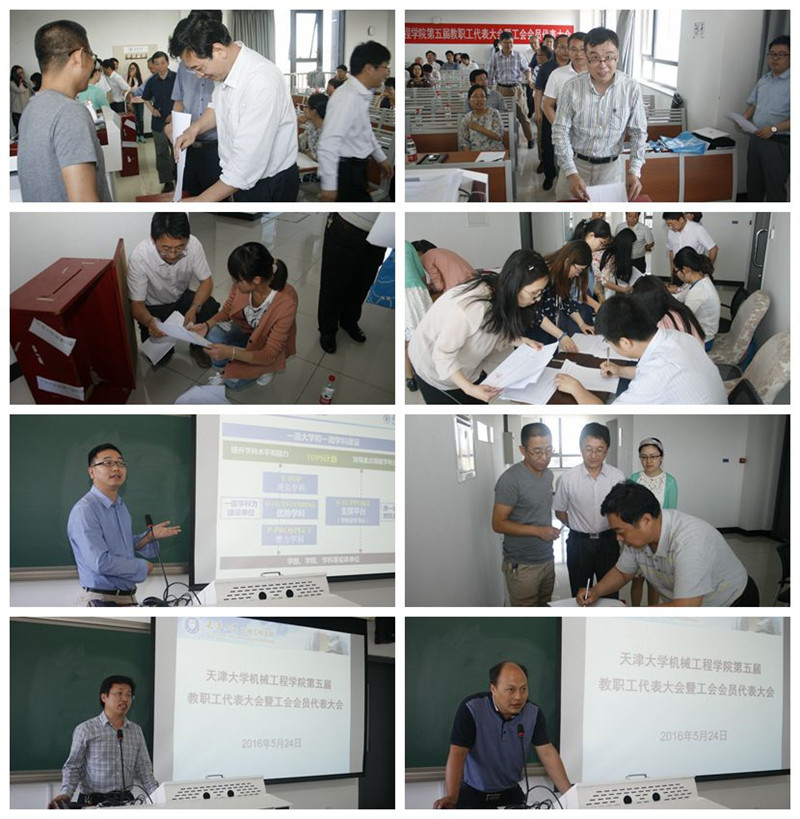 (通讯员 张洁 摄影 关毅)5月24日,机械工程学院在新校区召开第五届教职工代表大会暨工会会员代表大会,选举产生天津大学第八届教代会代表、第十六届工代会代表,新一届工会委员以及新一届教代会主任、副主任。会议由机械工程学院团委书记刘岳主持,学院教代会代表和工会会员代表出席会议。