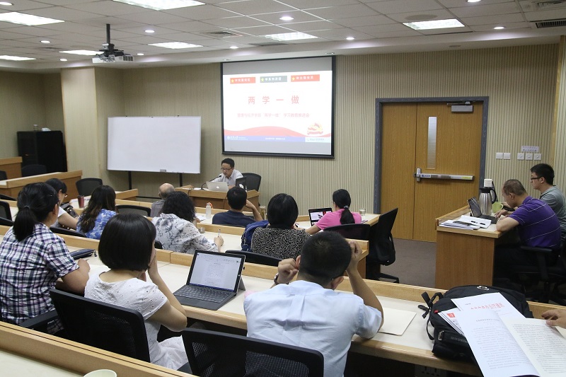 施亮星首先对上半年学部“两学一做”学习教育的开展进行了总结。“两学一做”学习教育开展以来,管理与经济学部党委根据天津大学党委的总体安排与部署,结合学部实际,整体布局、精心策划,认真开展各环节工作内容,取得了阶段性成效。施亮星从深入学习,精准指导,充分发挥党委的引领与指导作用注重落实;务求实效,真正做到基层支部建设有平台有抓手;持续改进,激发活力,各支部战斗堡垒作用进一步发挥等方面对学部在“两学一做”学习教育的整体情况开展、主要做法与经验等方面进行了总结。