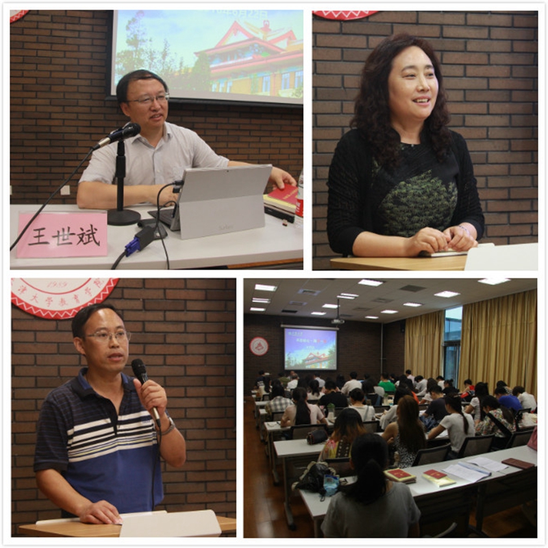本站讯 (通讯员 刘梦茹)6月22日,教育学院“两学一做”专题教育党课在教育学院127会议室举办。党委书记王世斌为全体教职、学生党员同志作了题为“不忘初心”的党课讲座。院长闫广芬,副院长朱健、孙克俐等出席,学院全体教职工和学生党员参党课,活动由学院党委副书记、副院长刘东海主持。