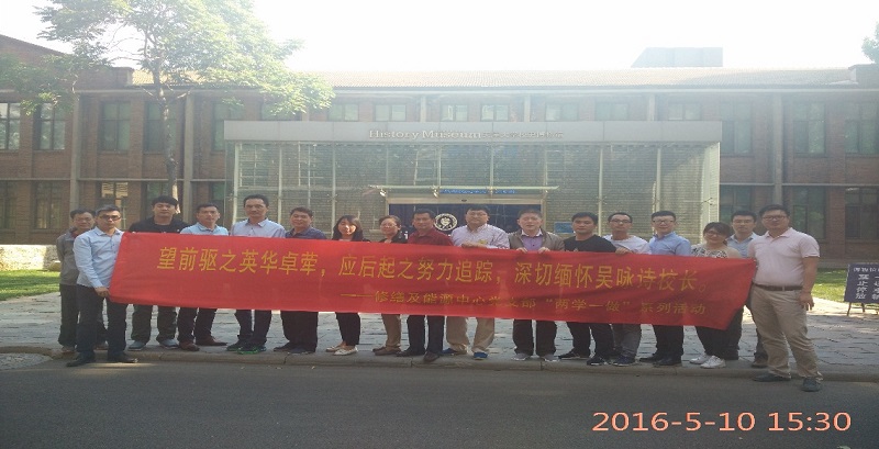 按照《天津大学关于在全体党员中开展“两学一做”学习教育的事实意见》要求,紧扣“各基层支部学习交流党的历史、革命先辈事迹”要点,5月10日,后勤保障部修缮管理中心和能源管理中心组织全体党员和入党积极分子参观了吴詠诗校长的生平事迹成就展,并重温了学校“实事求是、严谨治学、爱国奉献”的北洋精神。