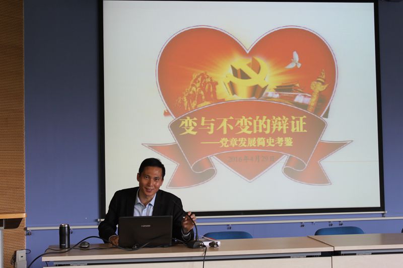 肖松山从历史和辩证的角度,对中国共产党自成立以来章程上的发展变化,做了较为系统的介绍。首先,肖老师对党章的总纲和具体内容进行概括介绍;其次他以时间为序将建党95年来党章(党纲)的17次修订(包括“增”和“删”)特别是改革开放以后党章的变化情况进行全面分析,介绍了党章的“变化”;最后,他突出强调了党章“不变”的根本内容,例如全心全意为人民服务的宗旨、马克思主义的指导地位、实事求是的思想路线、民主集中制的组织原则等自写入党章以来从未删改。党课站在历史的高度,通过对党章变与不变的辩证分析,有助于党员更好地学习贯彻党章,理解我党在完善组织制度、加强执政能力建设、提高党建科学化水平,以及更好地贯彻党的方针政策和重大部署。