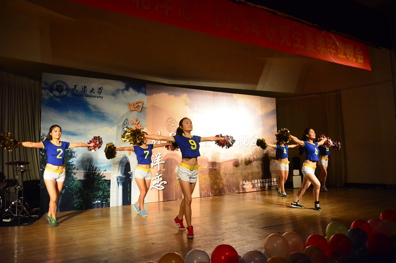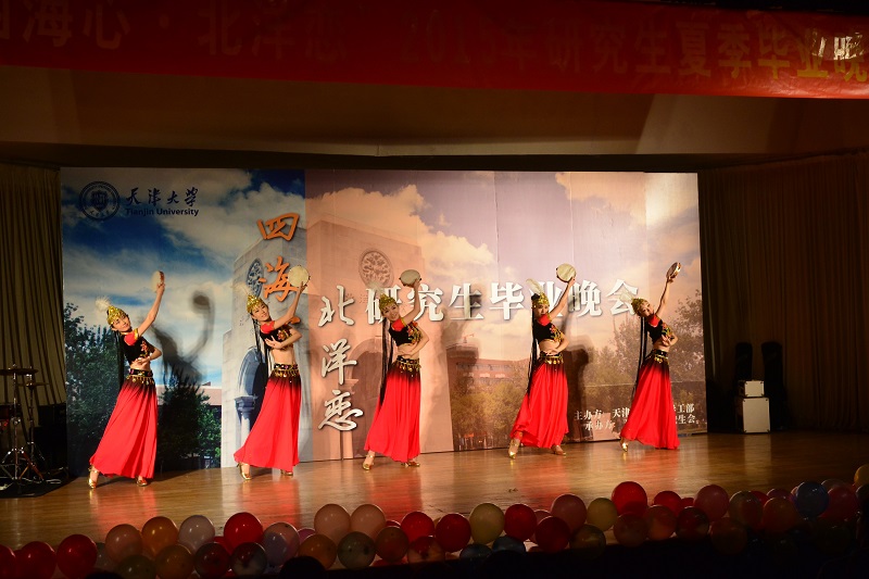 由化工学院2015届博士毕业生孙临泉领衔的摇滚乐队奉上了多首经典曲目,阵阵欢呼声和掌声响彻报告厅,毕业生们在《光辉岁月》的全场大合唱中落下激动的眼泪。留学生的非洲现代舞《Toofanorobo》更让同学们感受到了异国艺术的魅力。郭晓晨、曹源深情对唱《最后一个夏天》,两位可爱的女生在歌声中深情演绎对求学时光的留恋。