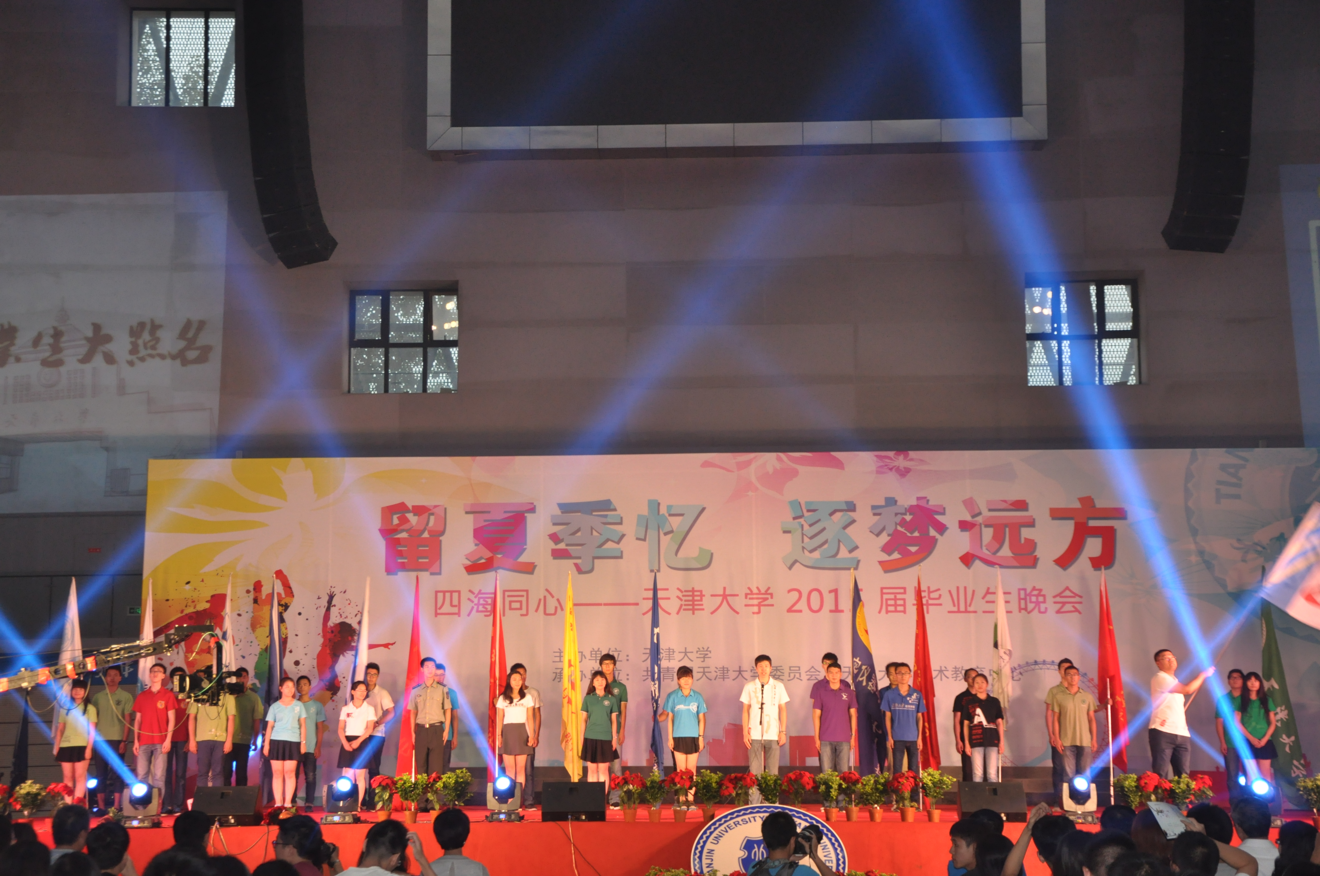 毕业不诉离伤。7月11日晚,“留夏季忆·逐梦远方”——天津大学2015届毕业生晚会在天津大学体育馆成功上演。本届晚会由天津大学主办,共青团天津大学委员会和天津大学艺术教育中心承办。天津大学党委书记刘建平,党委副书记李义丹,纪委书记兼工会主席汪曣出席了晚会,各部处、各学院负责人与近3000名天大毕业学子欢聚一堂,共同观看演出。
