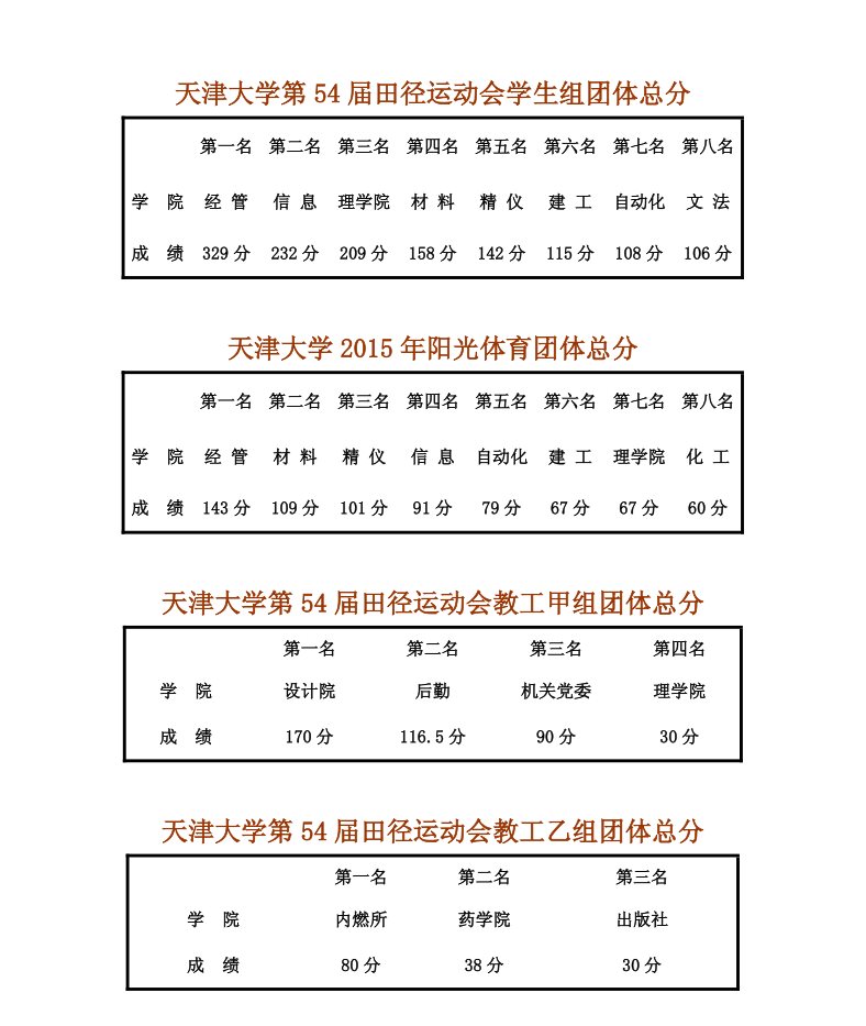 本站讯(学生记者 张锴烨 周思圆 摄影记者王建泽 学生记者姜博)5月30日上午8时,天津大学第54届田径运动会在天津大学体育场隆重开幕。校长李家俊、副校长冯亚青,校党委副书记李义丹,副书记、纪委书记汪曣,副校长元英进,校长助理刘耀昌、张力新,党委常委、组织部长统战部长马春有出席了活动。最后,管理与经济学部、信息学院和理学院分获学生团体总分前三名,设计总院、后勤集团、机关党委分获教工甲组团体总分前三名,内燃所、药学院、出版社分获教工乙组团体前三名。