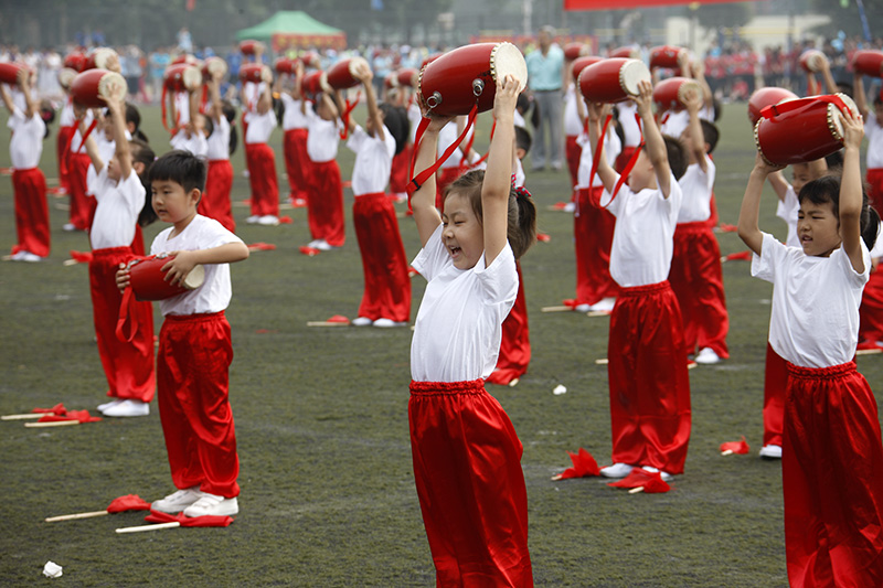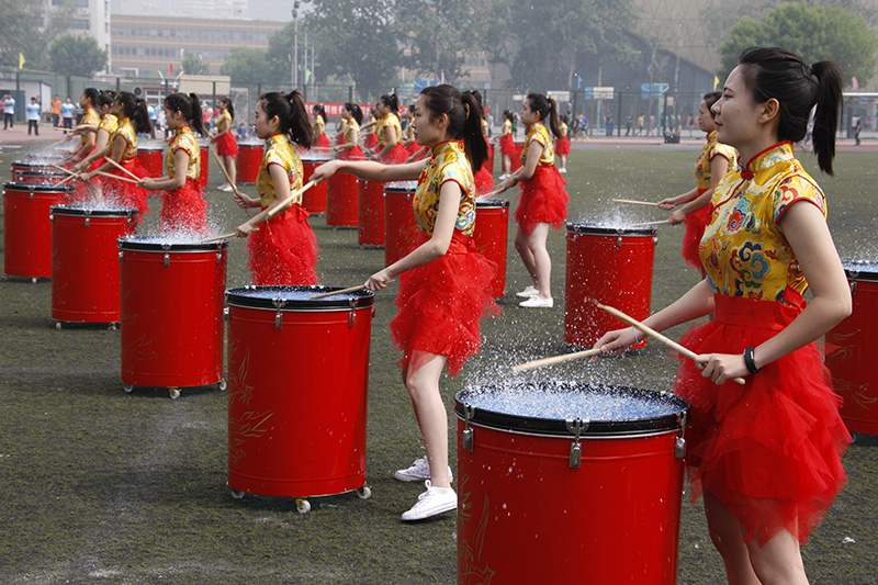 接着,运动员退场,表演项目开始。来自天大幼儿园的百余名小朋友们高举双臂雀跃地列队跑步上场,活泼可爱的风格,朝气蓬勃的腰鼓表演,为赛场增添了一抹亮色,掀起了运动场气氛的高潮。教职工的广播体操表演以整齐划一的动作为在场观众带来了视觉的享受,他们是最美的天大老师。柔和的音乐,柔美的舞姿,让我们一起感受了瑜伽带给我们的无限魅力。跳动的音符,动感的舞姿,带有创新元素的水鼓表演向我们演奏了青春的活力。