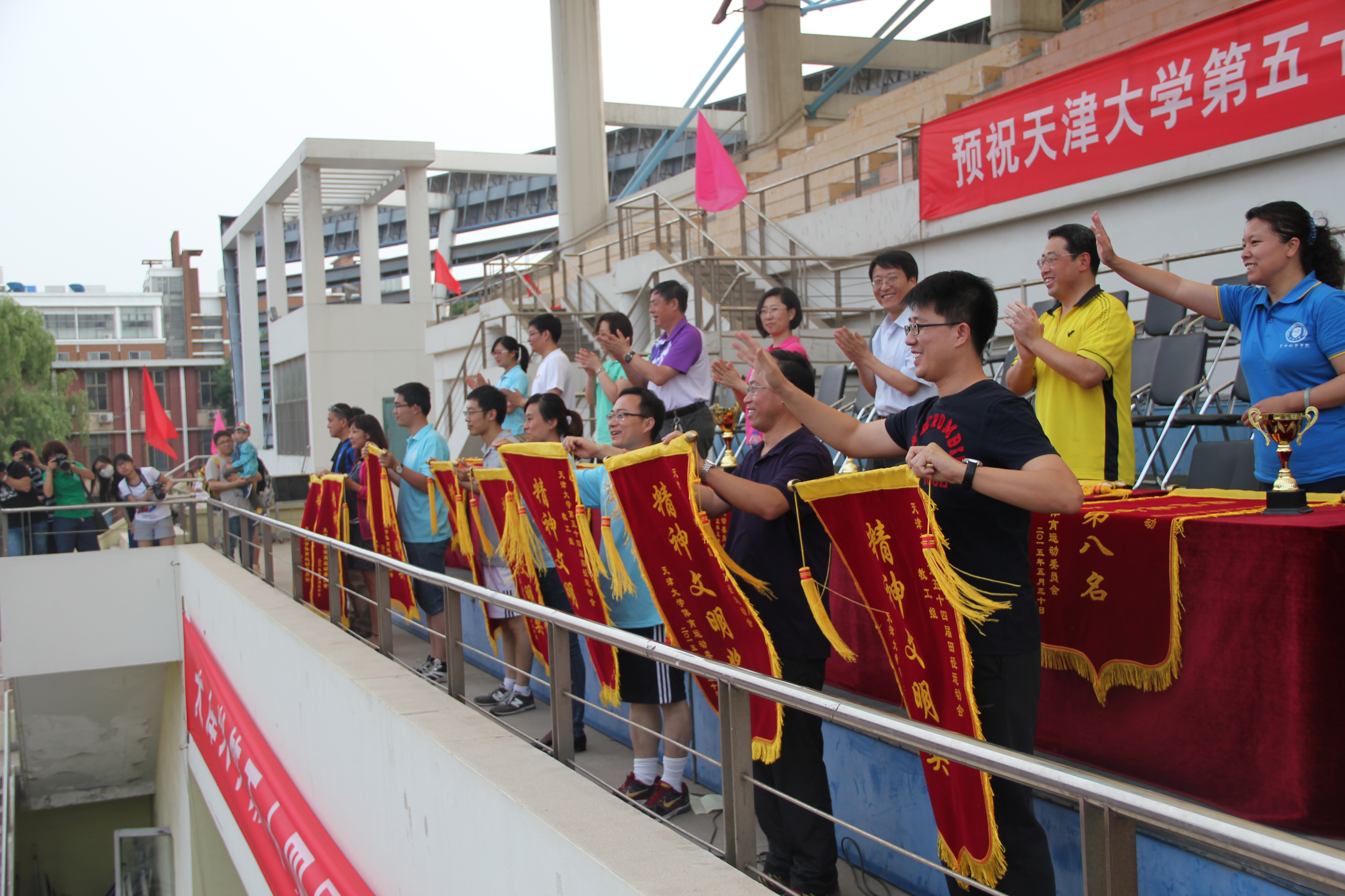 本站讯(学生记者周思圆 摄影学生记者黄星晨)经过了近一天的紧张赛事,5月30日下午4点,天津大学第54届田径运动会闭幕。作为本届运动会最后一个又最为牵动人心的一个环节,田径场上的气氛热烈。最终,经管学部以329分的高分夺得学生团体总分第一名,信息学院和理学院分别以232和209分的成绩位列第二、第三名。