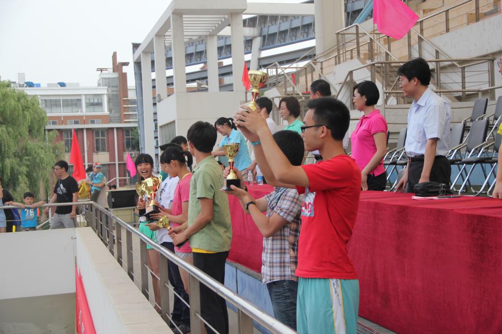 与会领导为各获奖团体颁发了奖杯、锦旗和奖品。最后李义丹致闭幕词。首先他代表学校向所有获奖的单位表示热烈的祝贺,向所有的运动员、工作人员和所有的观众表示衷心的感谢。李书记表示是大家共同的努力才造就了本届运动会的圆满成功。这是我校长期以来高度重视体育教学的结果,是把人才培养同竞技体育和群众体育紧密结合的结果,是广大学生和广大教职工平时积极参加体育锻炼的结果,他希望广大同学和教职工再接再厉,在下一届运动会上取得更好的成绩。最后,他还指出这届运动会是我校在这个校区最后一届全校性的运动会,并期待明年在新校区举办的运动会上再见。